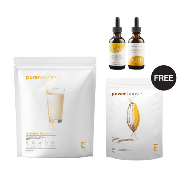 PureNourish™ è un integratore alimentare formulato per sostenere il tuo apporto quotidiano di vitamine e nutrienti in una deliziosa bevanda. Ogni porzione combina 11 vitamine e minerali essenziali con 18 g di proteine vegetali di alta qualità, enzimi naturali e il 25% della dose giornaliera raccomandata di fibre.